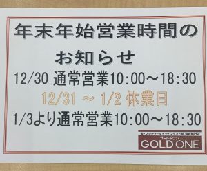年末年始営業時間のお知らせ ゴールドワン酒田店