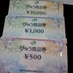 こんにちは。 今日は久しぶりの晴天でしたが、午後から急に雨が降ってきましたヨ!!(@_@) では、先日酒田店にてお買取させて頂きました 「びゅう商品券」をご紹介致します。 ¥500、¥1,000、¥10,000とまとめてお持ち頂きました…